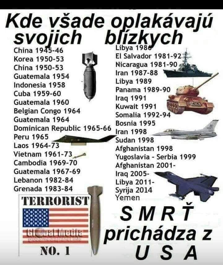 ►Československo OSVOBODILA Rudá armáda, SSSR!! A nikdo jiný!! Američané pouze DOJELI na předem domluvenou demarkační linii!! Američané ve skutečnosti NIKOHO neosvobodili! Obsazovali města v západních Čechác a v západní části Jižních Čech. Kam Američané přijeli, nastaly problémy! Okamžitě se začali paktovat s hitlerovci/Němci/fašisty, kšeftovali s nimi, ochraňovali je. Ano, vzali je do zajetí, na což se samotní Němci vyloženě klepali, třásli se na to! Němci si přáli dostat se k Američanům do zajetí, aby si v panickém strachu před postupujícími Rusy zachránili své bídné životy. Němci si byli vělice dobře vědomi, že by je u Rusů postihl velice tvrdý a zasloužený trest za ta všechna zvěrstva a zločiny, kterých se při svých válečných dobyvačných taženích dopustili na obyvatelstvu okupovaných zemích. Proto se Němci běsivě snažili a pachtili se dostat k Američanům do zajetí!! Američané jim zachránili životy, spasili je. Američané je ukrývali, později převáželi po desítkách tisících do bezpečí, do Jižní Ameriky (Argentina, Chile, Paraguay aj.) ukrývali nacisty ve Střední Americe, ale také u sebe doma v USA, v Kanadě. Ukrývali nacisty i v Austráli, též dokonce v Evropě - v Rakousku, Švýcarsku, i v NSR!! Němci na Američany nestříleli, neboť se k nim chtěli dostat do zajetí a bezpečí!!Dovedete si představit, že vy byste stříleli a bojovali proti někomu, u koho si chcete zachrátnit svůj život?!!Různé prameny uvádějí, že Američanů ZAHYNULO (nikoliv PADLO!!) na území západních Čech a západní části Jižních Čech asi max. 116, ale většinou se shodují na tom, že jich bylo asi jen 90!! V PLZNI nepadl, nezahynul ani jeden!! Ztráty Američanů jsou v naprosté většině případů způsobeny jako nešťastné tragické nehody, neštěstí, havárie, vlastní neopatrnost, případně najetí na miny a tak podobně!Při osvobozování Československa padlo na území Československa na 144.000 vojáků Rudé armády. Dále padlo na území Československa asi 60.000 Rumunů a asi 1.000 Poláků!! Tito všichni ale bojovali a byli zařazeni v sestavách sovětských jednotek, sovětských frontů!!Takže při osvobozování Československo padlo tisícinásobně víc i těch Rumunů a Poláků, než Američanů!! Znovu - Američané NÁS NEOSVOBODILI, Američané dojeli do již osvobozené Plzně a američané obsazovali města do úrovně demarkační linie.Američané nás "osvobozovali" svým vlastním způsobem - bombami!! Tím jsou proslulí dodnes. Američané bombami ZABILI na československém území více než 20.000 československých obyvatel, žen, dětí, celých školních tříd i s jejich učiteli (viz bombardování Plzně dne 17. dubna 1945!!)Američané rozhodně nejsou naši osvoboditelé, ale naši vrazi!!Všichni ti, kteří oslavují "osvobozování" Američany, jsou cynici, lháři, ANEBO potomci a pohrobci Američany zachráněných nacistů/fašistů, všech jejich kolaborantů s nacistickým protektorátním režimem, potomci udavačů, spolupracovníků gestapa a říšských mocenských složek!!Taková je pravda!!