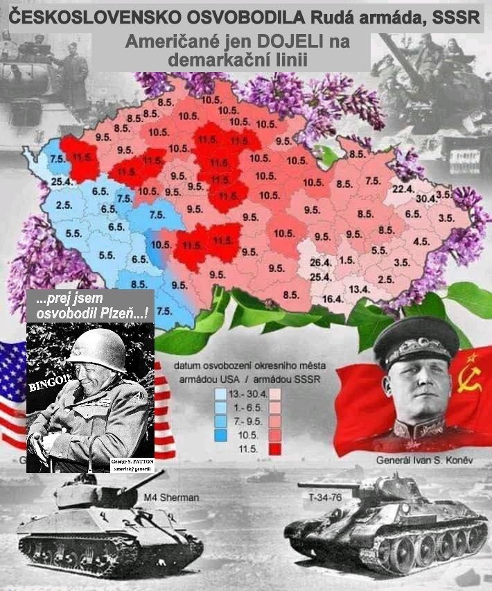 ►Československo OSVOBODILA Rudá armáda, SSSR!! A nikdo jiný!! Američané pouze DOJELI na předem domluvenou demarkační linii!! Američané ve skutečnosti NIKOHO neosvobodili! Obsazovali města v západních Čechác a v západní části Jižních Čech. Kam Američané přijeli, nastaly problémy! Okamžitě se začali paktovat s hitlerovci/Němci/fašisty, kšeftovali s...